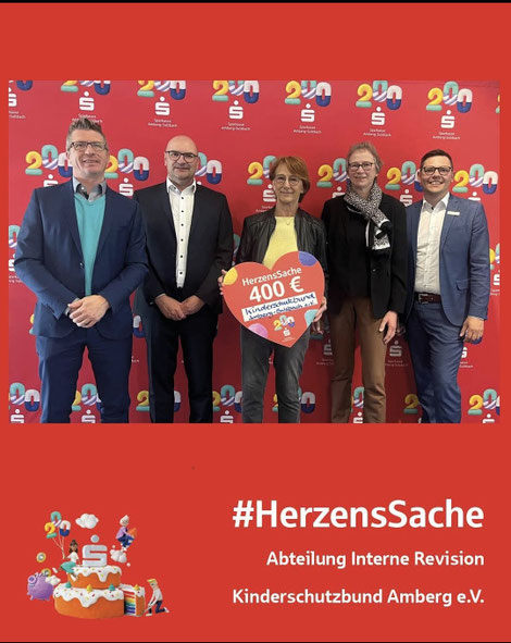 Die Mitarbeiter der Internen Revision der Sparkasse Amberg-Sulzbach spendeten 400 € an uns.